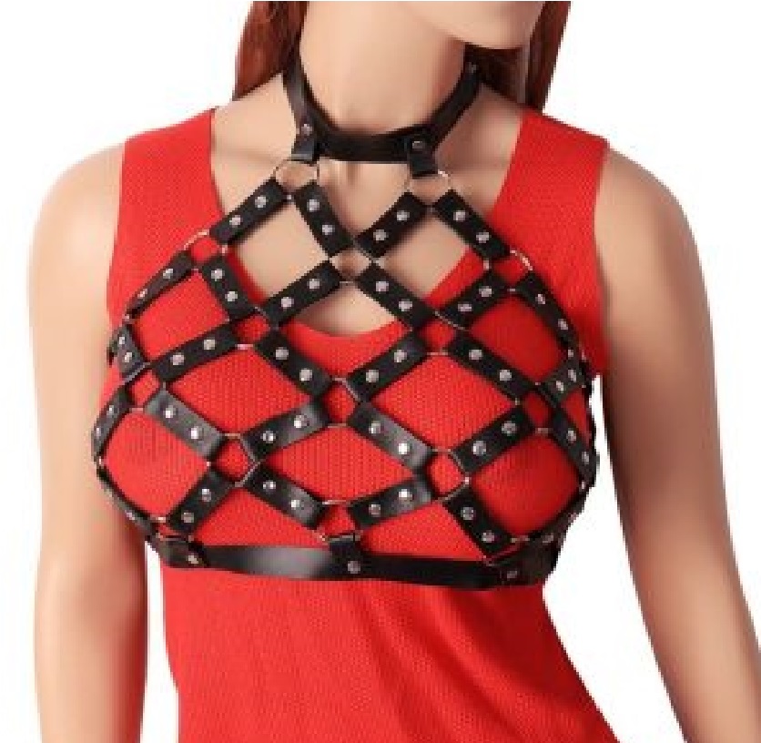 Περιγραφή Κατασκευάζετε στην Ελλάδα, χειροποίητο, από ΓΝΗΣΙΟ δέρμα και υλικά άριστης ποιότητος και αντοχής. Εξαιρετικό αξεσουάρ στο στήθος με ενωμένα λουράκια σε μεταλλικούς κρίκους να καλύπτουν το στήθος και να το κρατάνε σταθερό και στιβαρό στο λάγνο βλέμμα του συ6ντρόφου σας. Πρωτότυπη και τολμηρή προσθήκη σε ενα ανάλογο ντύσιμο, πάνω απο τα ρούχα για να ανενώσετε και να αναβαθμίσετε σημαντικά το extreme ντύσιμό σας.