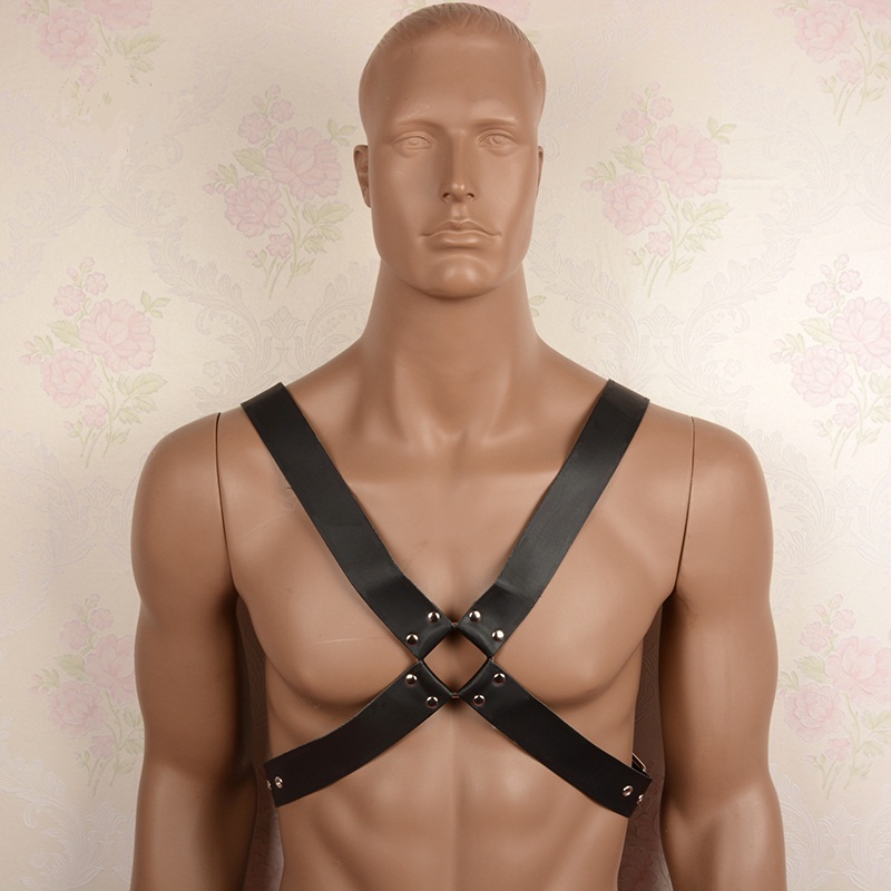 Περιγραφή Κατασκευάζεται στην Ελλάδα, χειροποίητο, απο πλαστικό δερμα και υλικά, αριστης ποιοτητος και αντοχης. Αξεσουαρ για το ανδρικο στήθος, με λουριά φαρδους 4cm, μ 4 λουρια σε σχήμα Χ, που ενώνονται σε ενα κεντρικο μεταλικο κρικο στη μεση του στήθους. Δυναμικη προσεγγιση στις ερωτικες περιπτήξεις σας.