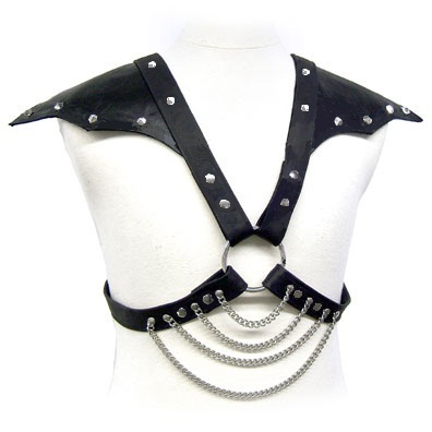Περιγραφή Κατασκευάζεται στην Ελλάδα, χειροποίητο, απο πλαστικό δερμα και υλικά, αριστης ποιότητος και αντοχής. Ανδρικό μπουστο με λουριά φαρδους 3cm, που ενώνονται σε ενα μεταλικο κρικο. Στα λουριά κατω απο το στηθος υπάρχουν 4 κρεμαστς διακοσμ,ητικες αλυσιδες. Διασθετει επωμιδες σε κυματιστα σχεδια. Ενα ιδιαίτερο αξεσουάρ που ομορφαινει και δινει ενα δυναμισμο στην εμφάνισή σας. Μπορειτε να το παραγγειλετε και σε Γνησιο δερμα. Τιμη: 78,00 ευρω.
