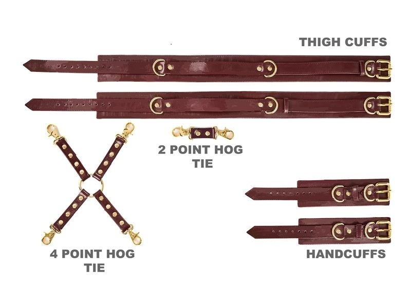 Περιγραφή Κατασκευάζεται στην Ελλάδα, χειροποιητο, απο ΓΝΗΣΙΟ δέρμα και υλικά, αρτιστης ποιότητος και αντοχης. Αποτελειται απο ενα ζευγαρι δέστρες για τους μοιρους και ενα ζευγαρι δεστρες για τα χερια. Επισης διαθετει ενωτικο σταυρό με 4 γαντζους και ενα μικρο ενωτικό αξεσουαρ με διπλο γάντζο. Ενα εξαιρετικο σετ δεσίματος για περισσοτερες και διαφορετικες εναλλαγες στα δεσίματά σας.