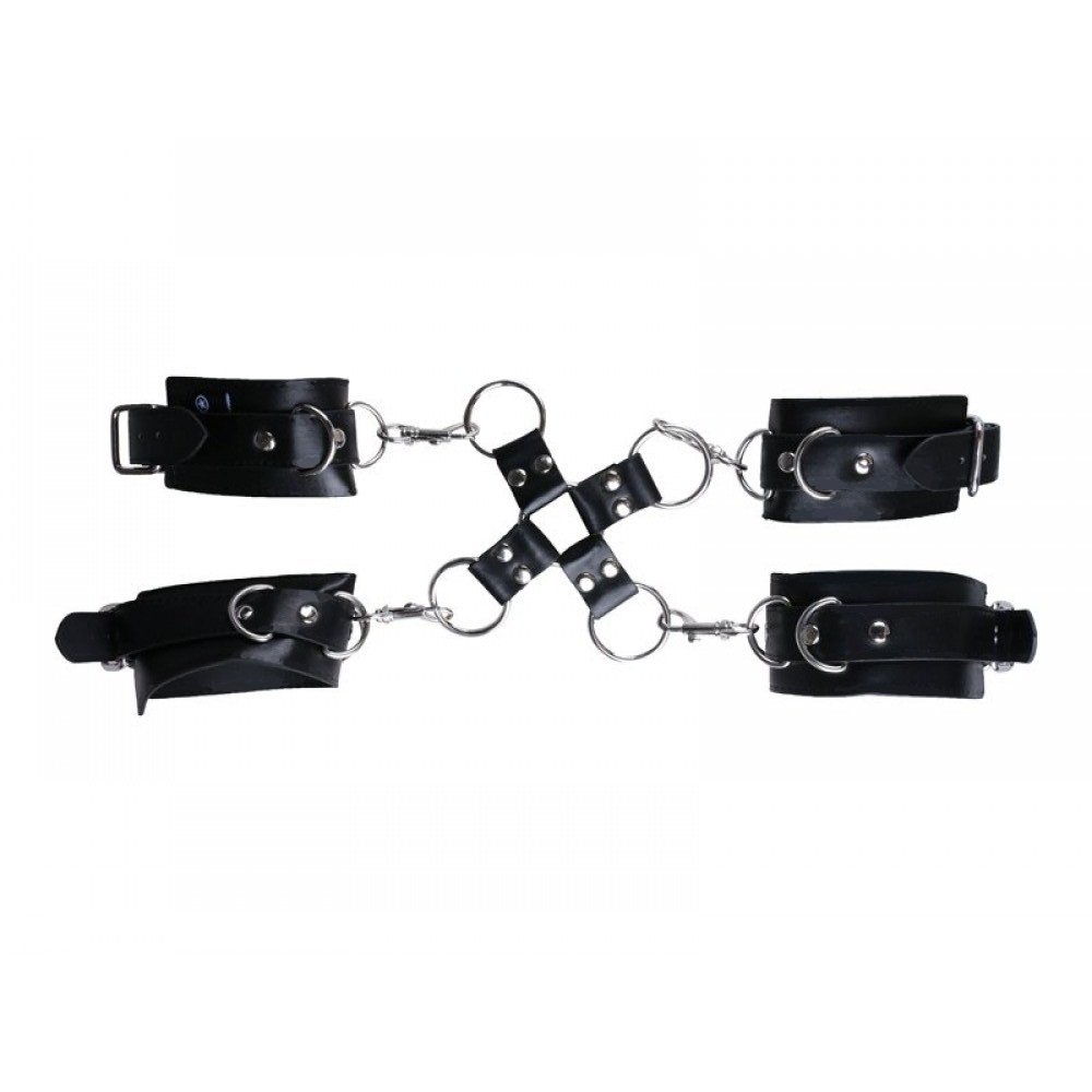 Κατασκευάζεται στην Ελλάδα, χειροποίητο, απο ΓΝΗΣΙΟ δέρμα και υλικά, αριστης ποιότητος και αντοχης. Αποτελείται απο 4 χειροπέδες, δέστρες χεριων και ποδιων, με διπλό δερμα, φάρδους 4,5 + 2,5cm, με διπλό μεταλικό κρίκο και γάντζο η κάθε μία. Διαθέτει ενωτικό σταυρό για πολλαπλά δεσίματα, Μπορειτε να τις χρησιμοποιήσετε και μεμονωμένα. Δώστε κίνητρα και λύσεις στα ερωτικα παιχνίδια σας. Μπορειτε να το παραγγείλετε και σε ΓΝΗΣΙΟ δέρμα. Τιμή: 68,00 ευρω.