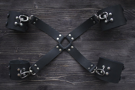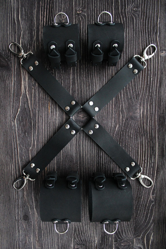 Κατασκευάζεται στην Ελλάδα, χειροποιητο, απο ΓΝΗΣΙΟ δερμα και υλικά, αριστης ποιότητος και αντοχης. Αποτελειται απο 4 δέστρες χεριων και ποδιών με διπλό δέσιμο η κάθε μία. Διαθετει ενωτικό σταυρο με 4 γάντζους ετσι ωστε να μπορειτε να ελίσεσται στις επιλογες που θελετε επιλέξετε, σε ολα τα δεσίματά σας. Ενα σετ ιδιαιτερο, πολυτελές, αξιόλογο, για ανθρωπους που τους αρεσει η ποιότητα της χειροποίητης κατασκευης.