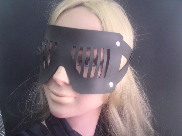 Κατασκευαζεται στην Ελλαδα, χειροποιητο, απο πλαστικο δερμα και υλικα, αριστης ποιοτητος και αντοχης. Δερματινη μασκα, διακριτικης και ουσιαστικης ορατοτητος. Στη θεση των ματιων υπαρχουν δερματινες ''μπάρες'', σαν να φυλακιζουν τα ματια σας στα βλεματα των αλλονων. Φυλακιστε διακριτικα τα ματια σας και διατηρηστε στην ουσια των ελεγχο των κινησεων γυρω σας. - (Μπορειτε να το παραγγειλετε και σε ΓΝΗΣΙΟ δερμα).