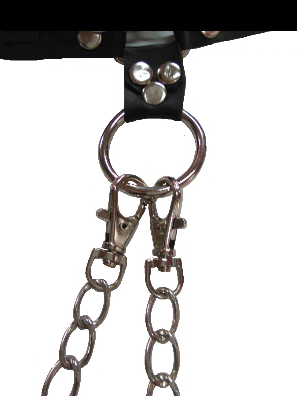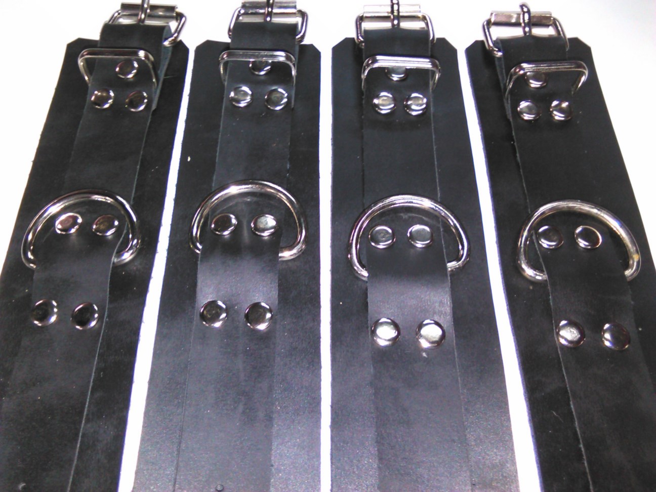 Κατασκευαζεται στην Ελλαδα, χειροποιητο, απο πλαστικο δερμα και υλικα, αριστης ποιοτητος και αντοχης. Ενα πολυμορφικο σετ δεσιματος που αποτελειται απο 4 χειροπεδες, για ποδια και χερια, με διπλο δερμα, φαρδους 6cm, και μηκους 32cm. Επισης διαθετει λαιμοδετη με διπλο δερμα, φαρδους 6cm, και μηκους 50cm με κτρικο μεταλικο χαλκά. Εχει δυο αλυσιδες μηκους 1,20m η καθε μια με συνδετικους γαντζους στα ακρα για πολλαπλα δεσιματα, οπως τα φαντασιωνεσται. Δωστε μεγαλυτερη ποικιλια, χρόνο και βαθμο δυσκολιας στα ερωτικα σας παιχνιδια δημιουργωντας σεναρια και νεες διαδρομες.